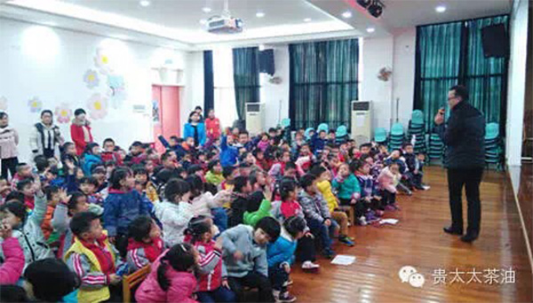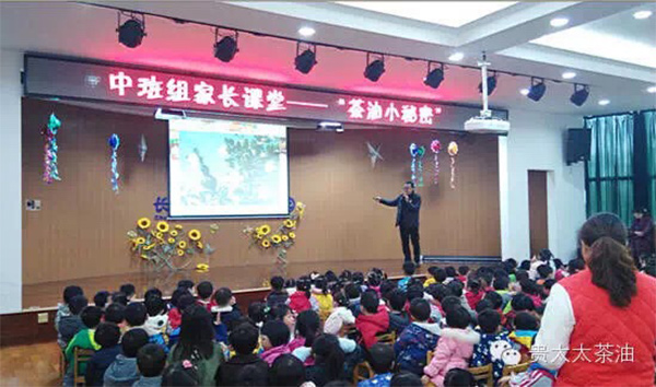 “開(kāi)課了,開(kāi)課了!”在小朋友、家長(zhǎng)和老師們的熱切期盼中,12月10日上午,湖南貴太太茶油科技有限公司《茶油小課堂》第一站走進(jìn)了八方幼兒園,為大家?guī)?lái)了《茶油小秘密》,小課堂的首位講師——貴太太茶油總經(jīng)理聶楷峰先生。