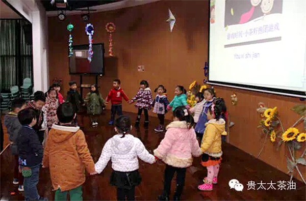 之后,還有一個(gè)《茶油蹲》的小游戲,“茶花蹲,茶花蹲,茶花蹲完茶果蹲……”。課堂的現(xiàn)場(chǎng)氣氛爆棚,還有小朋友因沒(méi)有選上臺(tái)參加游戲流下了遺憾的眼淚。